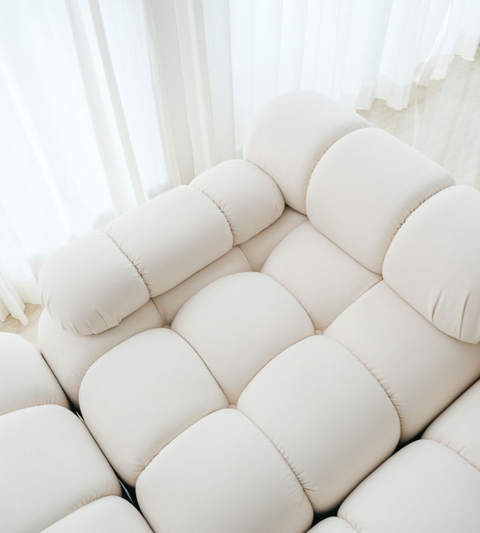 L-shaped Waffle Sofa in solid wood and velvety fabric upholstery